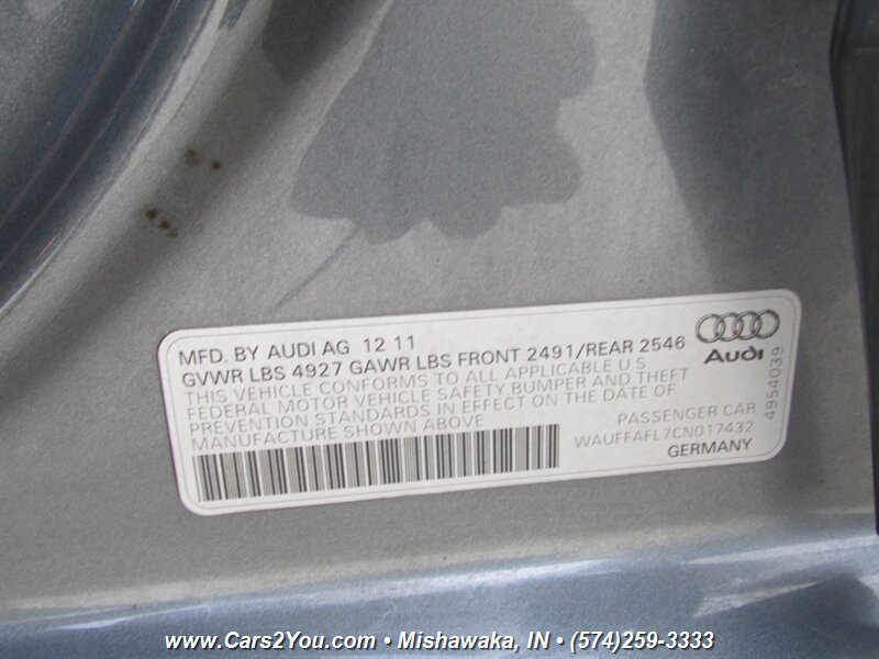 You are viewing a very nice and clean, 2012 AUDI A4 QUATTRO PREMIUM PLUS AWD. This is powered with a very smooth and strong running engine, the transmission is Automatic. The engine runs very smooth and the transmission shifts perfect. There are no abnormal sounds from the engine or transmission and the car runs very smooth! The car was recently checked out and test driven by our mechanic and no problems were found, we check all cars out before we sell them! We sell only sound cars with good history - buy with confidence! The paint on this vehicle is in good condition except for some small dings and scratches here and there all very minor, the interior is in top shape - I truly can't see any wear. The spare is in the trunk and appears never used, the jack and all other tools are there too, unused as well - please check the pictures! The car is problem free - buy and drive anywhere! A6 A5 A3