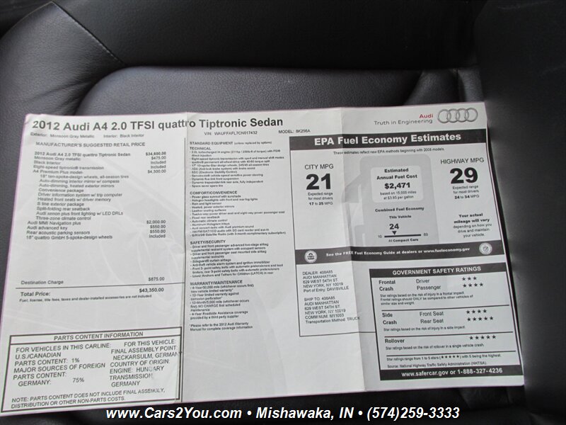 2012 Audi A4 2.0T quattro Premium Plus 4-Door Sedan