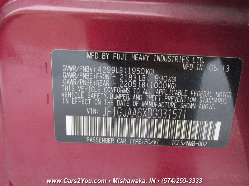 You are viewing a super nice and clean, 2013 SUBARU IMPREZA 2.0i AWD. This is *1OWNER* vehicle! Car is powered with the 4 cylinder engine, the transmission is 5 Speed Manual. This vehicle drives very good, and its extremely reliable! This car will go anywhere with the All-Wheel-Drive system! The engine sounds super, no ticking, knocking or anything else, it shows perfect compression. SUBARU has proven thru the years to make very reliable and long lasting vehicles. The car was recently checked out and test driven by our mechanic and no problems were found, we check out all vehicles before we sell them! We sell only sound cars with good history - buy with confidence! This vehicle drives very good, the ride is very smooth. The engine performs as good as a new one, no abnormal sounds, no surprises! The A/C blows COLD! Just turn the key and go! The interior is clean. Sound system sounds good. Tons of options and a very peppy and super reliable 4 cylinder engine. The audio system sounds very good. The interior is in very good shape, no rips or tears on the upholstery. This is very nice car, don't miss this opportunity to own it at a great price! FORESTER OUTBACK CROSSTREK WRX