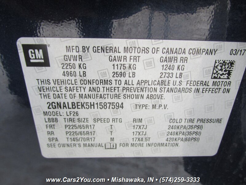 You are viewing a super nice and clean, 2017 CHEVROLET EQUINOX LS. This truck in in exceptional condition. This is powered with the 4 cylinder engine, the transmission is Automatic. This vehicle drives very good, and its extremely reliable! CHEVROLET has proven thru the years to make very reliable and long lasting vehicles. The truck was recently checked out and test driven by our mechanic and no problems were found, we check out all vehicles before we sell them! This vehicle drives very good, the ride is very smooth. The A/C blows COLD! Just turn the key and go! The interior is clean. Sound system sounds good. Everything points that its been very well taken care of. This is very nice truck, don't miss this opportunity to own it at a great price! TRAX TRAVERSE