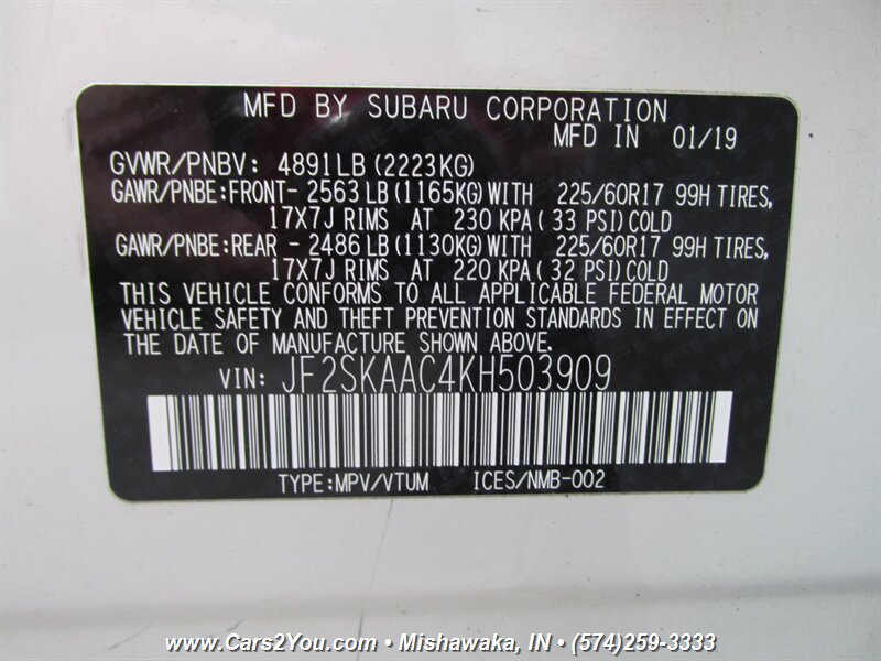 You are viewing a super nice and clean, 2019 SUBARU FORESTER 2.5i AWD. This is powered with the 4 cylinder engine, the transmission is Automatic. This vehicle drives very good, and its extremely reliable! This car will go anywhere with the All-Wheel-Drive system, and it get 32MPG on the highway! SUBARU has proven thru the years to make very reliable and long lasting vehicles. The car was recently checked out and test driven by our mechanic and no problems were found, we check out all vehicles before we sell them! This vehicle drives very good, the ride is very smooth. The engine performs as good as a new one, no abnormal sounds, no surprises! The A/C blows COLD! Just turn the key and go! The interior is clean. Sound system sounds good. Tons of options and a very peppy and super reliable 4 cylinder engine. The interior is in very good shape, no rips or tears on the upholstery. This is very nice car, don't miss this opportunity to own it at a great price! outback impreza legacy